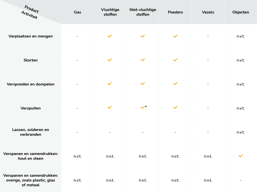 - - Valt buiten het toepassingsdomein van Stoffenmanager®.